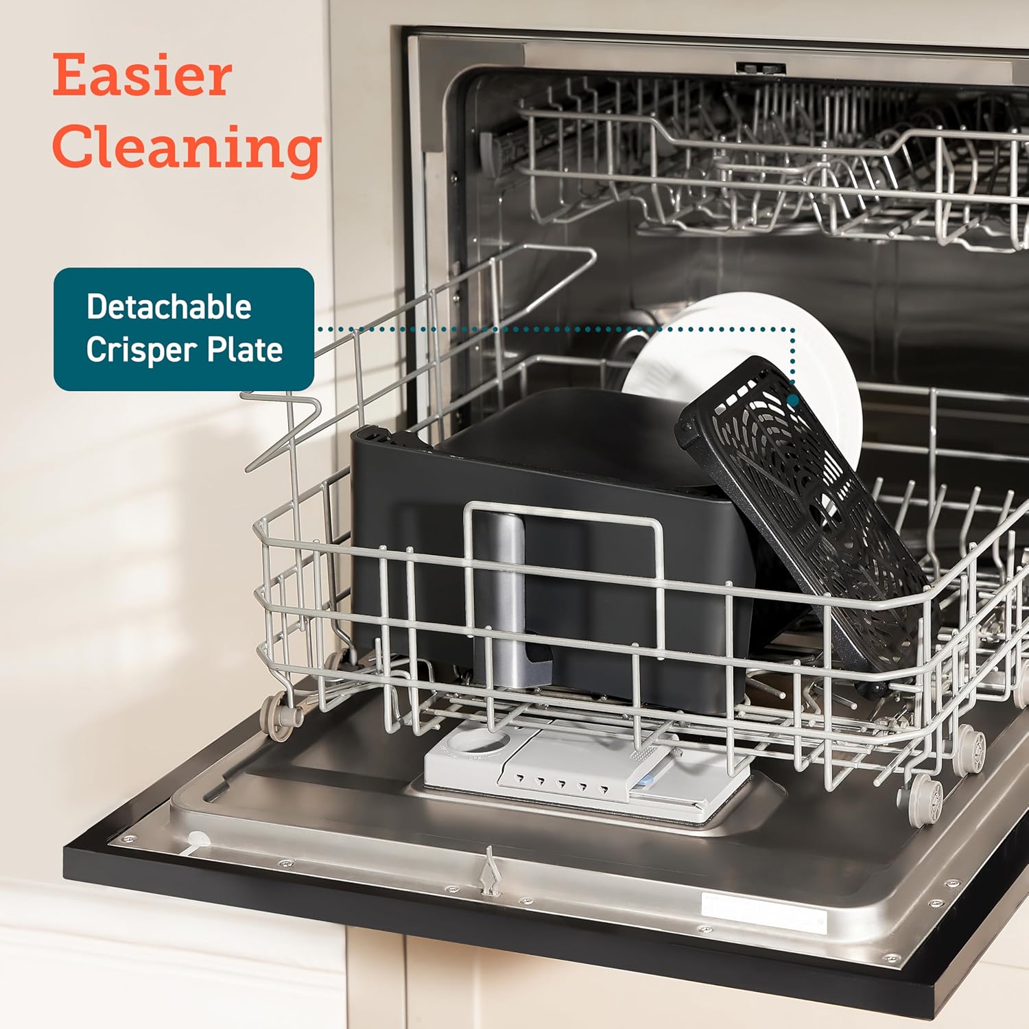 - 𝑬𝒇𝒇𝒐𝒓𝒕𝒍𝒆𝒔𝒔 𝑪𝒍𝒆𝒂𝒏𝒊𝒏𝒈! Clean the detachable crisper plate effortlessly by hand or in the dishwasher, saving you time compared to cleaning a whole basket!