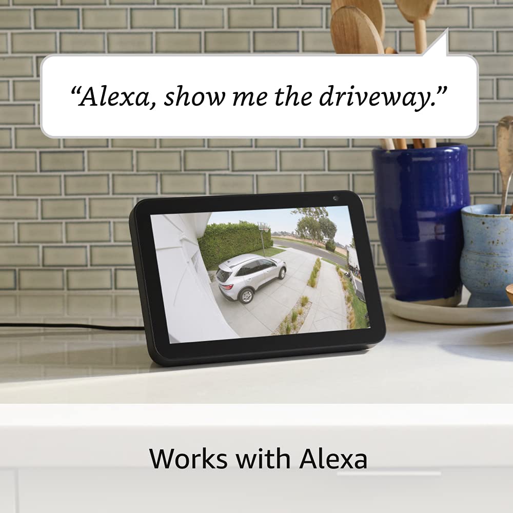 - For added peace of mind, pair with Alexa to help you keep an eye on your home. Connect with Alexa to hear motion alerts on your compatible Echo device or see a Live View with an Echo Show, Fire TV, or Fire Tablet. Talk to visitors by saying, “Alexa, talk to the front door.” With a Ring Protect plan (subscription sold separately), Alexa can also make voice announcements and automatically show live video feed on an Echo Show, Fire TV, or Fire Tablet when your Ring Floodlight Camera detects a person.